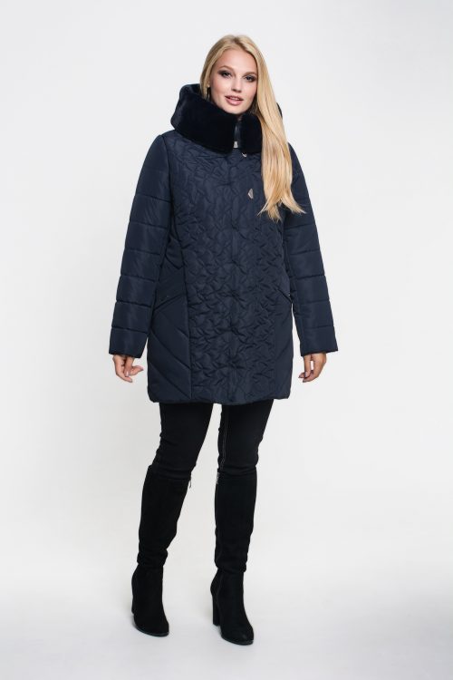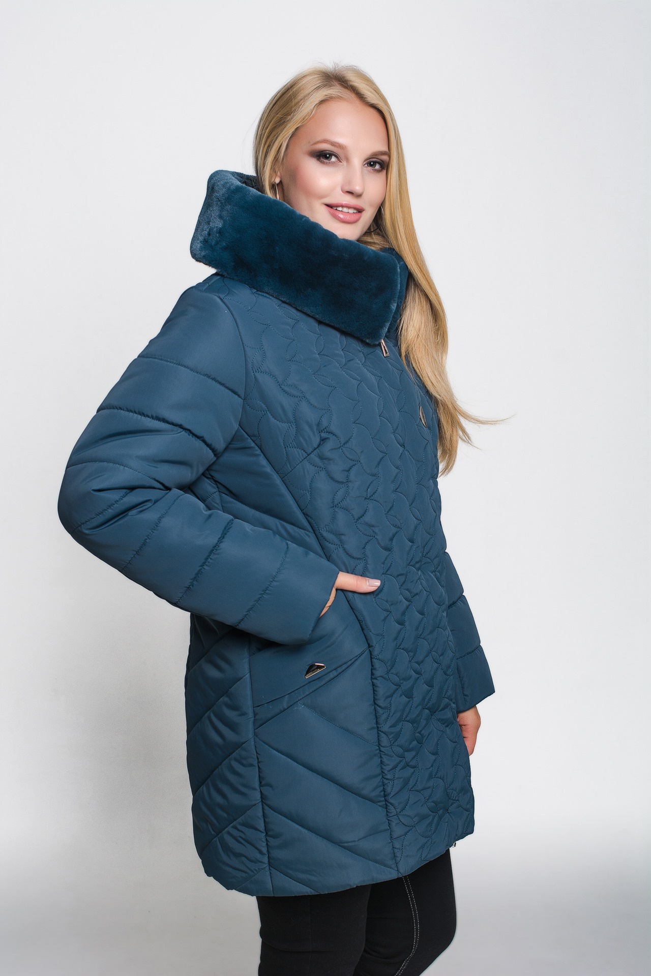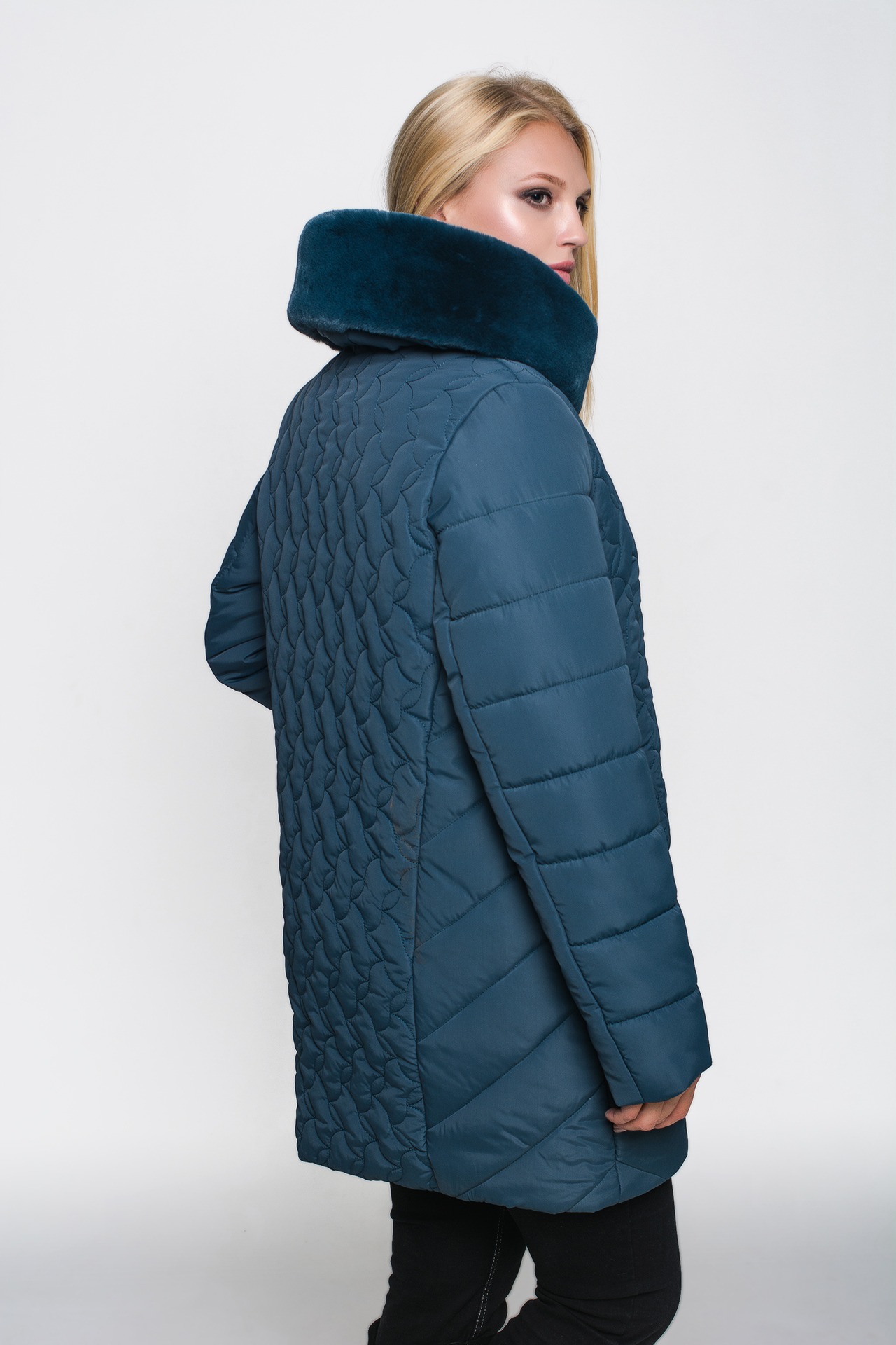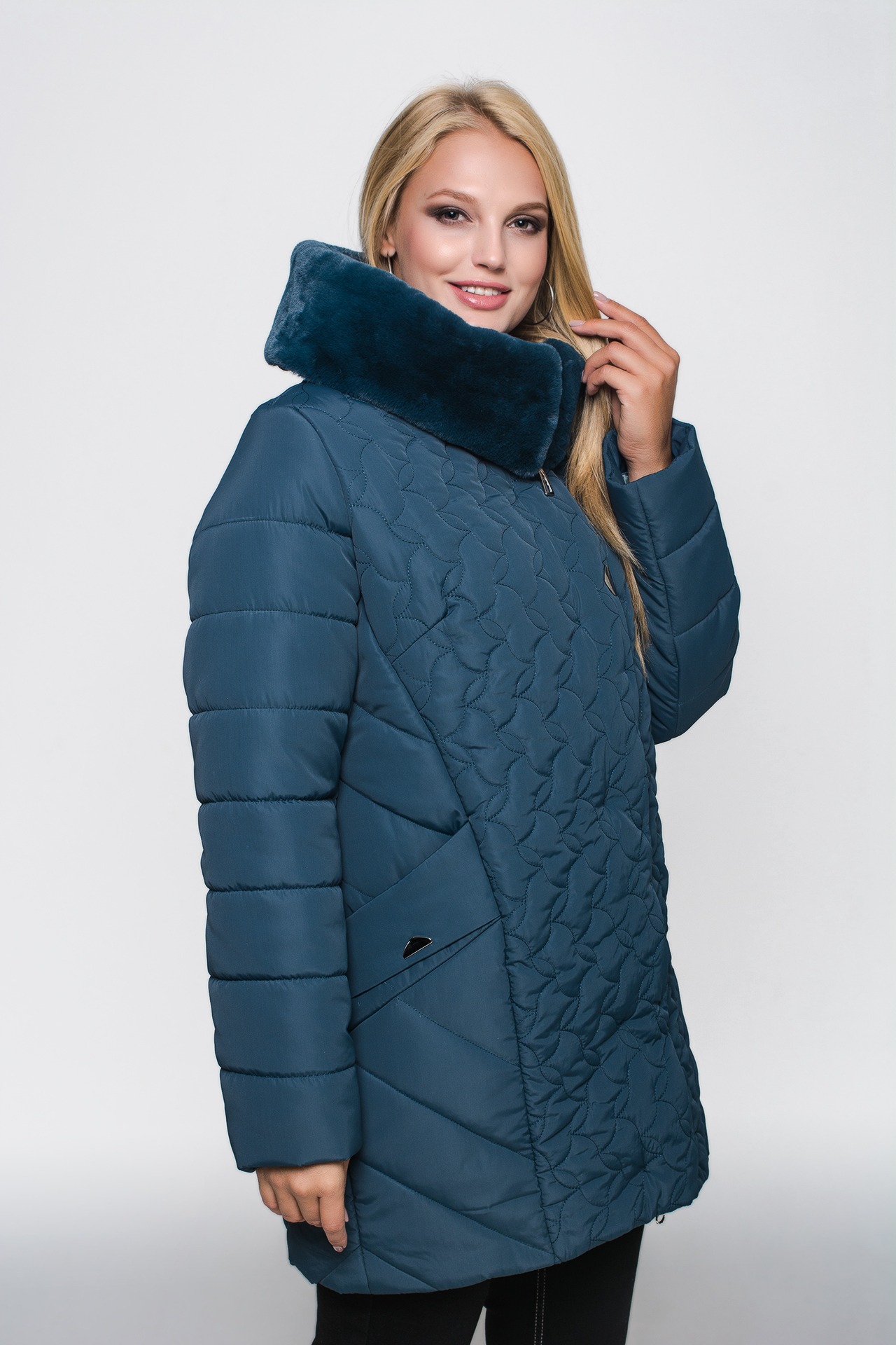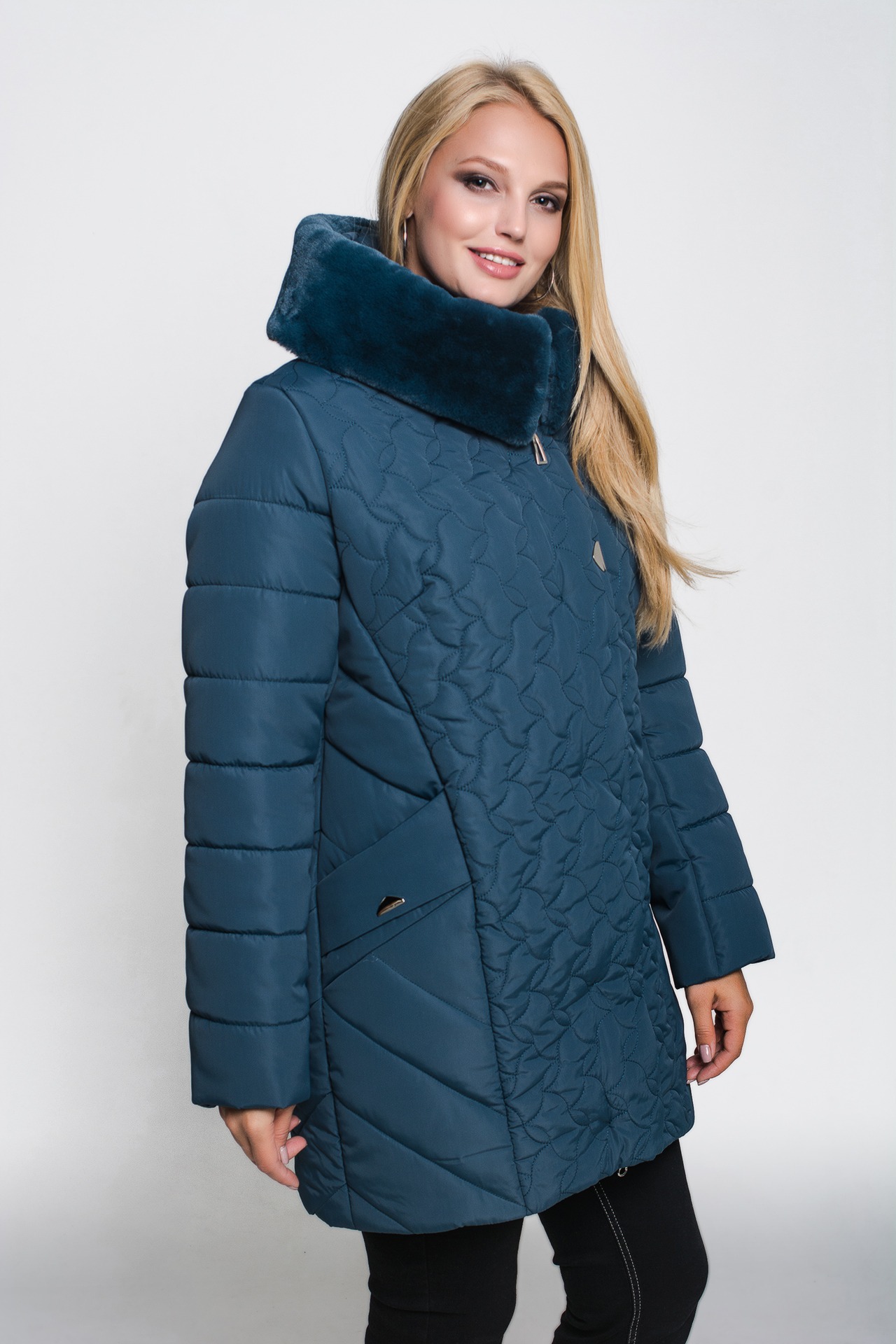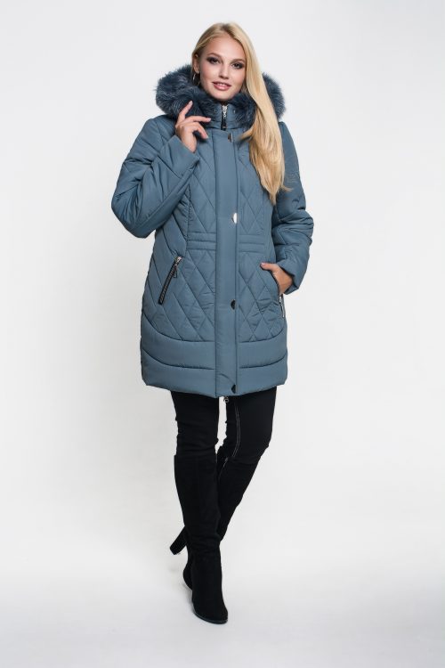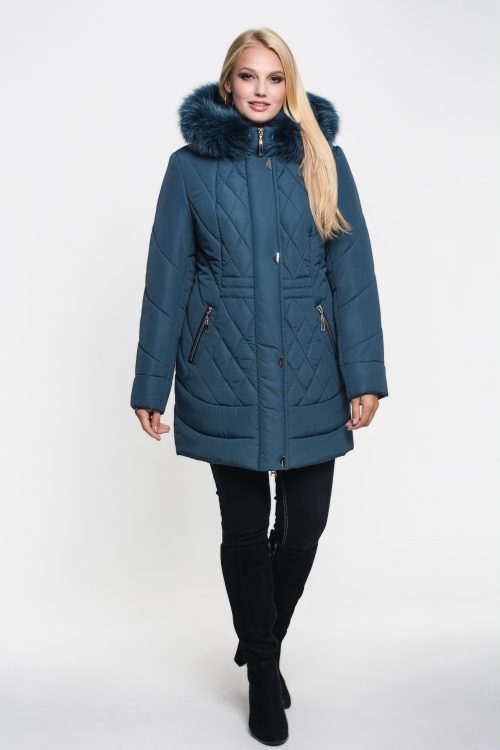 Зимняя куртка «Марта» цвета морская волна, модель осень/зима 2019. Полуприталенная модель и объемная стежка сложной формы обеспечивают великолепную посадку и скрывают недостатки фигуры.