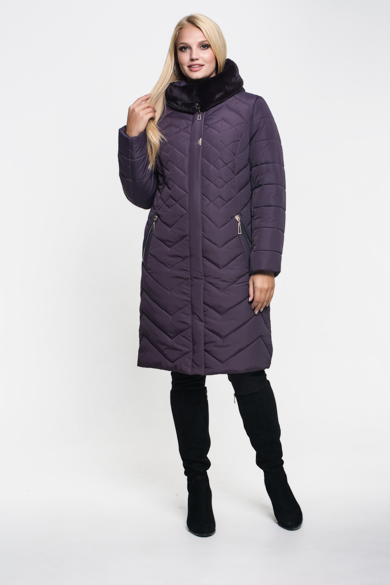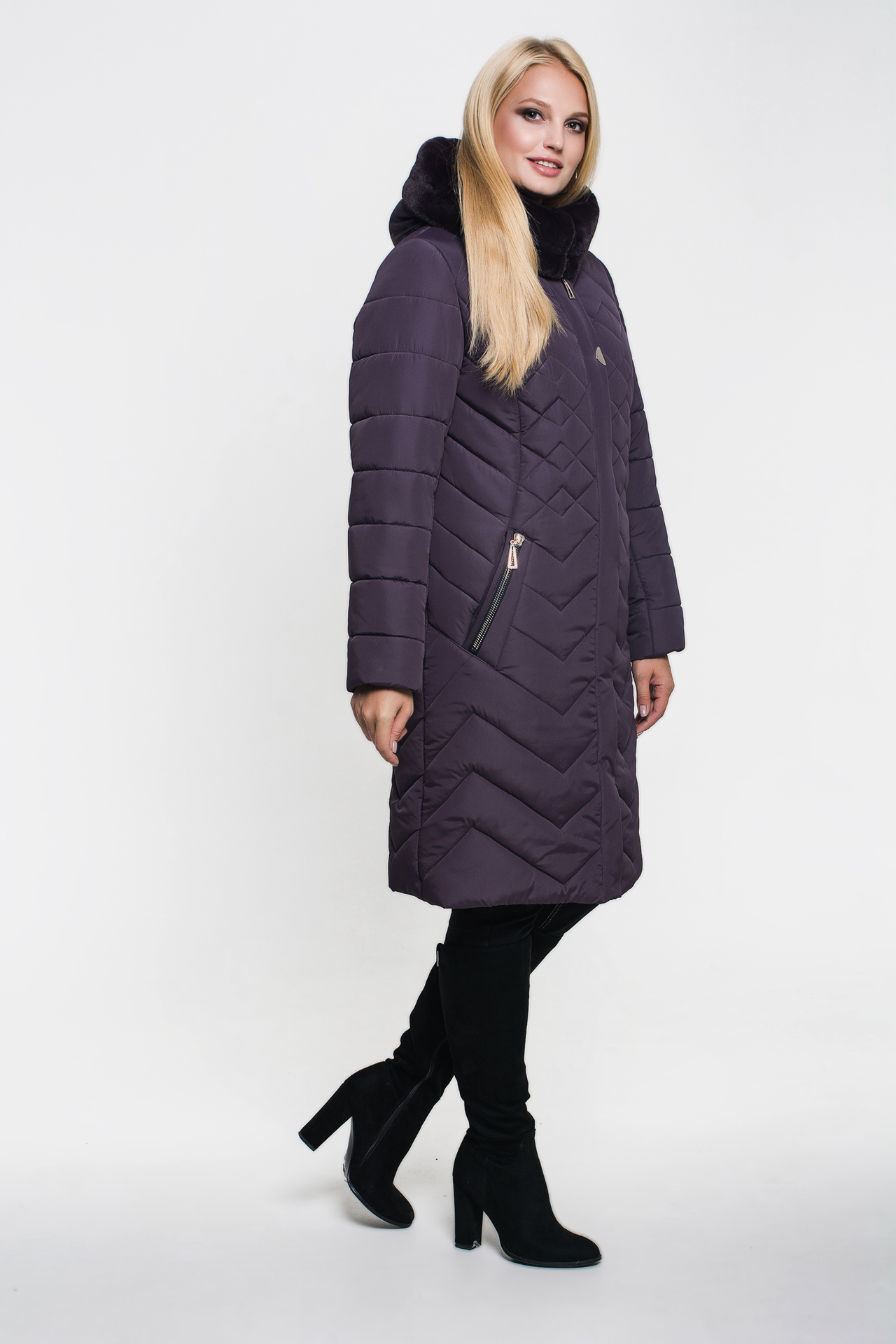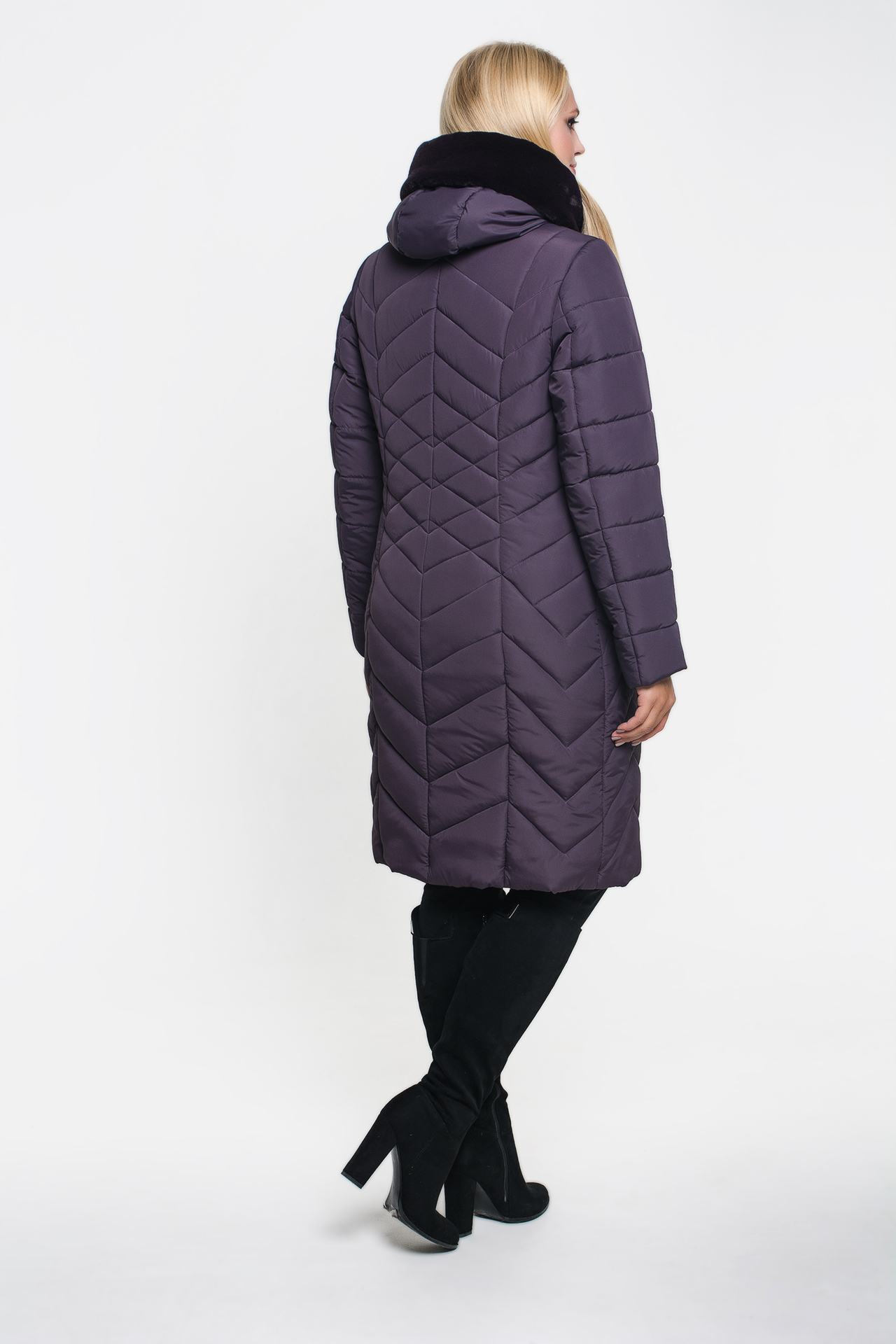 Зимнее женское стеганое пальто пуховик «Санта» сливового цвета, модель осень/зима 2019.